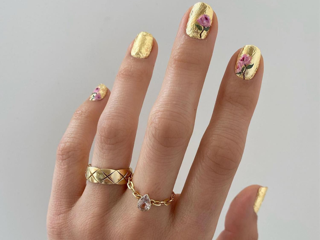 6. Single Accent Nail Drama Keep most nails simple (e.g., red or nude), then load one with chunky gold foil for a statement. Easy DIY with transfer foil sheets.