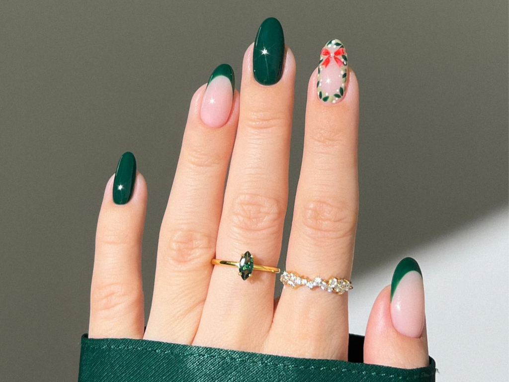 4. Foil on Deep Red or Emerald Press gold foil flakes onto glossy red or emerald bases for festive contrast. Scatter lightly for falling “snow” or cluster for drama—perfect with your recent emerald designs.