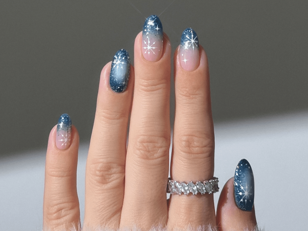- Base color polish (e.g., deep red, blue, or glittery for winter vibe).
