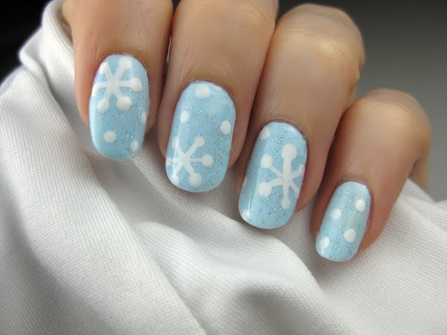 - For extra sparkle, use silver or glitter polish for snowflakes on dark bases.