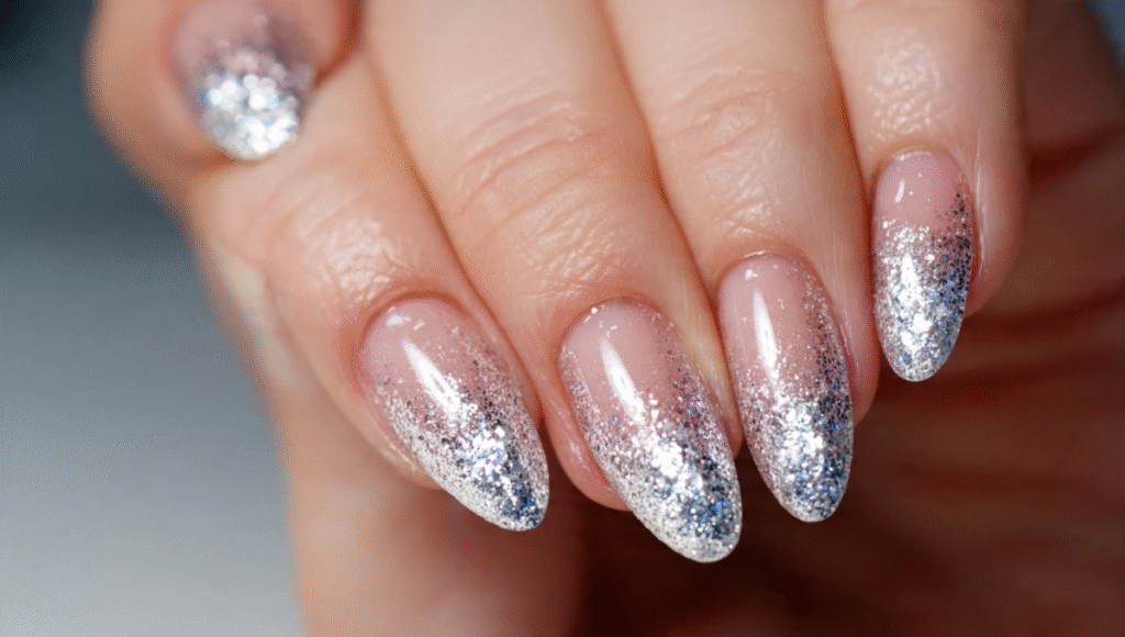 Frosty Silver Glitter Ombré (sparkling metallic gradients for holiday glam).