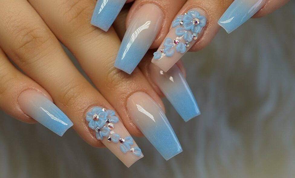 Bold Winter Blues & Accents (deeper blues fading to tips, with chrome or crystals).